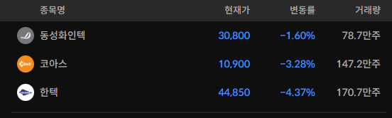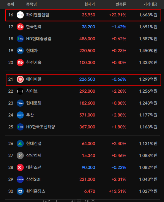 코스피/코스닥 상위 거래대금 종목