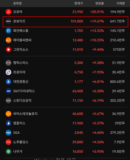 - 로봇과 관련된 섹터는 전부 상승했으나, 차트상 트레이딩하기 좋은 종목은 로보티즈로 보인다.