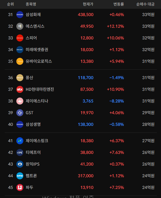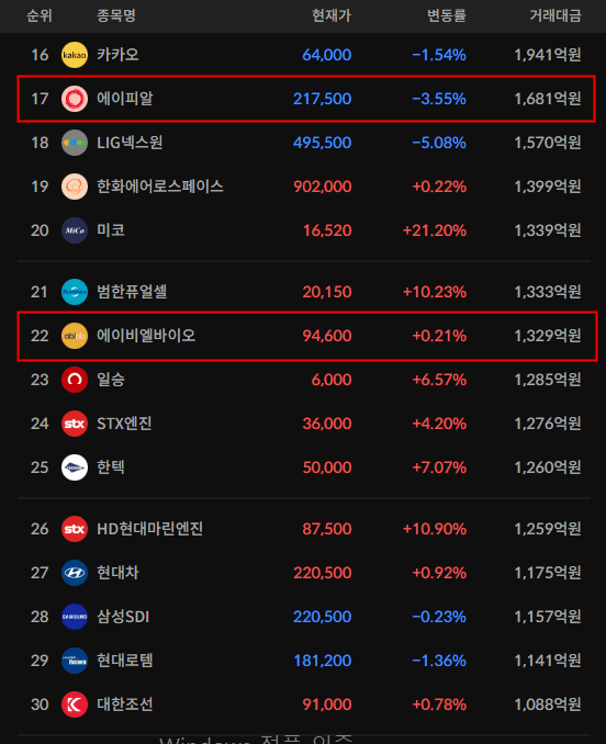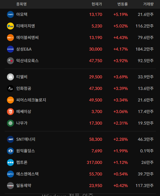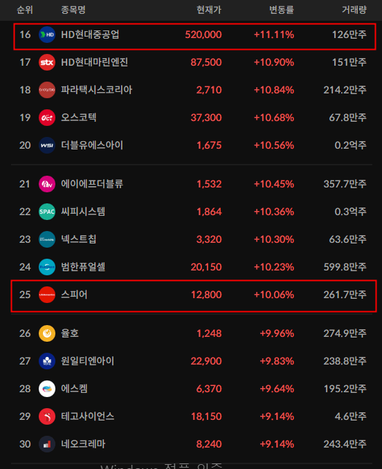 - 개별호재로 상승률이 올라간 종목들이 많이 나타난다.