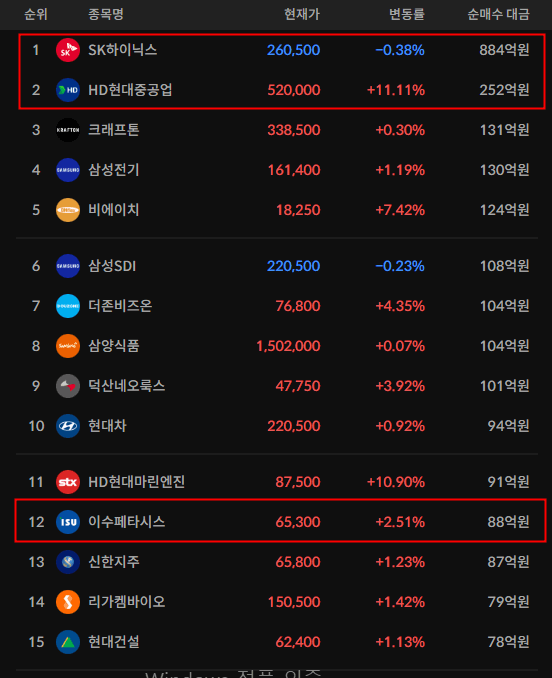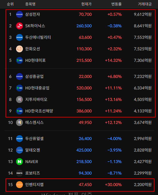 - HD중공업/HD현대마린 합병설에 시장이 횡보했으나, 다른 종목들은 하락했다고 볼 수 있는 장이었다.