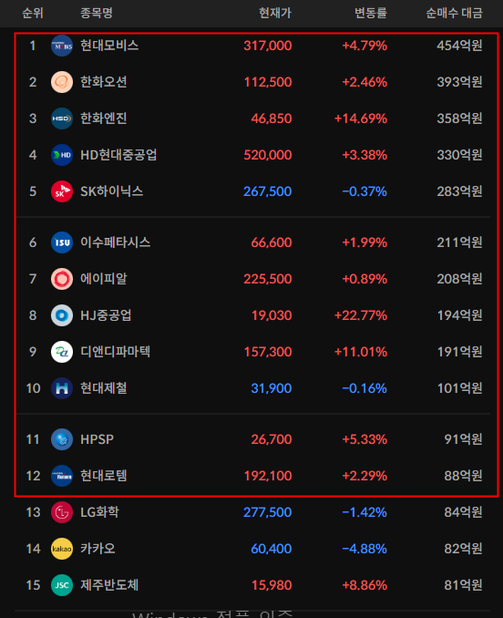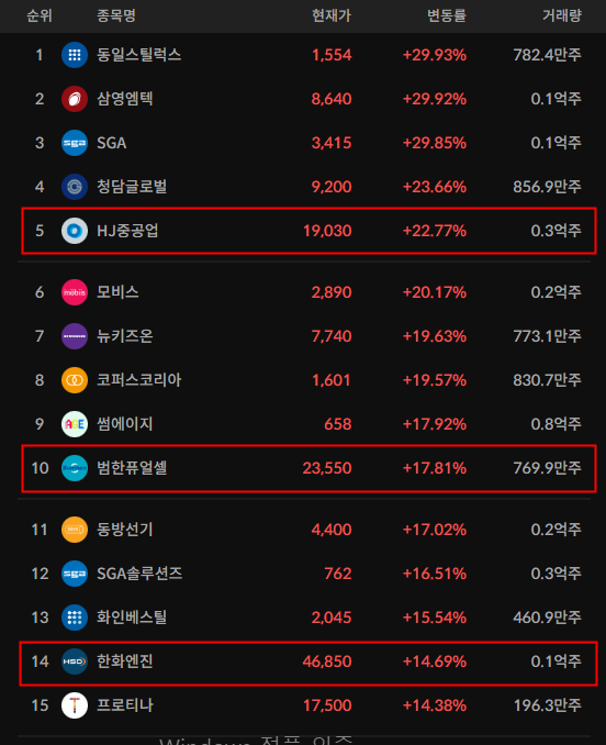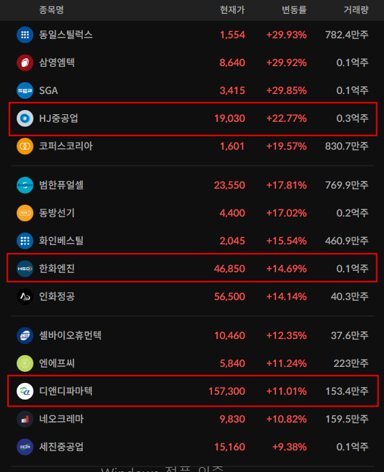 - MAGA 조선업은 한국에서 Block형으로 조립하여, 완성품을 미국에서 진행한다는 소식에 supply chain 종목에 대한 상승 및 순환매로 인한 중소형업체가 크게 상승하고 거래대금이 터지는 모습이다.