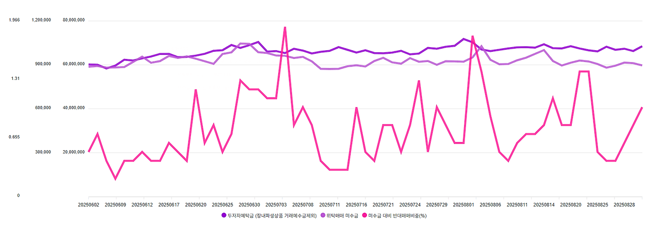 - 투자자예탁금이 개인의 매도세에비해서 크게 상승한 모양이고, 신용융자와 미수금도 반대매매의 상승에도불구하고 꾸준히 증가하는 모습이다. 미장의 하락세가 예상되니, 국장으로 돌아오는 모습인가..?