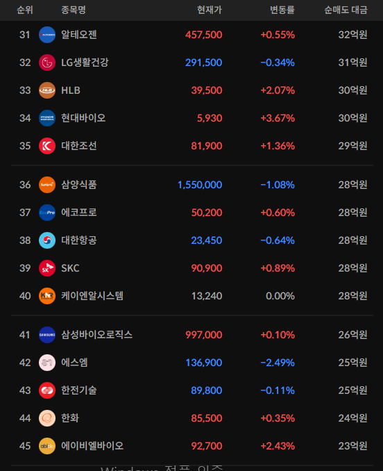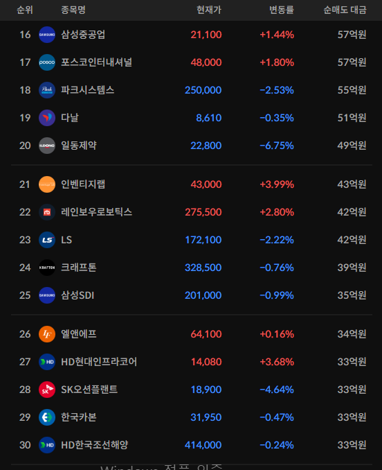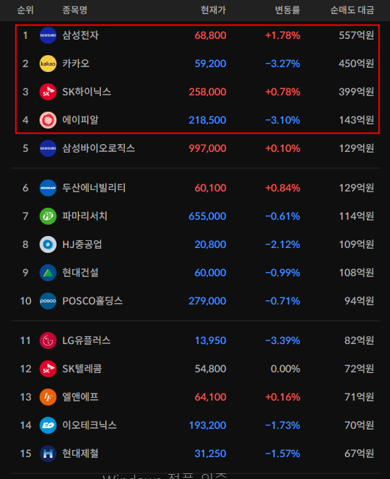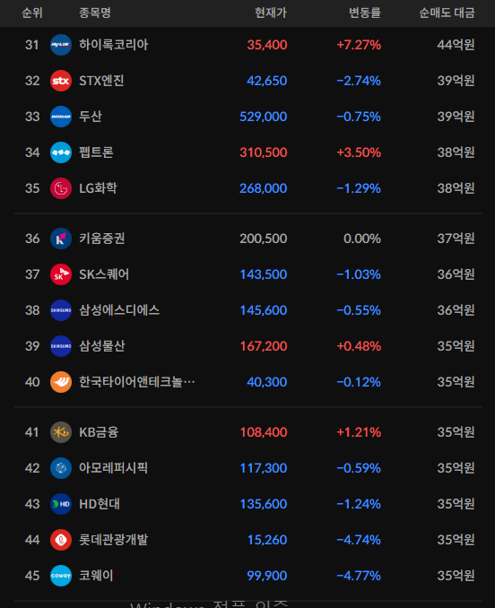 코스피/코스닥 외국인 순매도상위