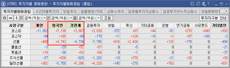 - 간만에 외기관의 큰 수급이 들어왔다. 동시에 개인의 큰 매도세가 나타났다.