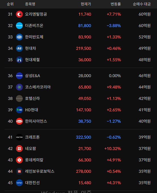 - 세법 대주주 양도세 10억→50억에 대한 기대감이 커지면서 외기관의 수급이들어온 모습, 해당 발표는 9/11에 결정될 예정이지만, 아직 말만그럴지도 모른다.