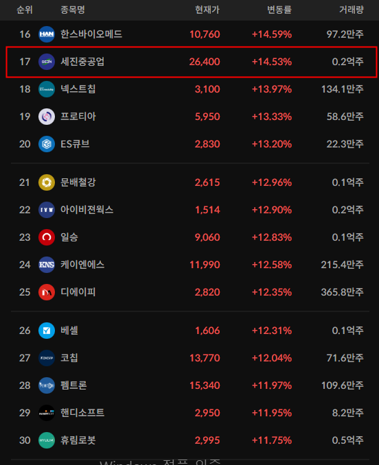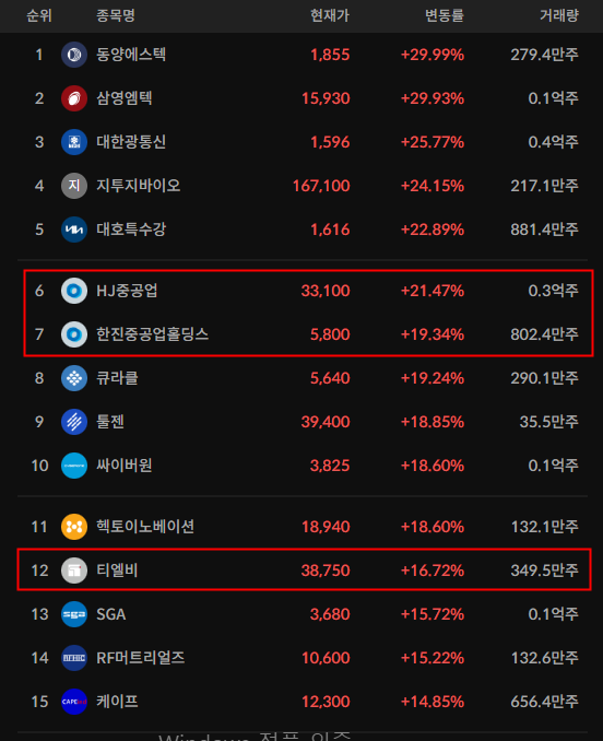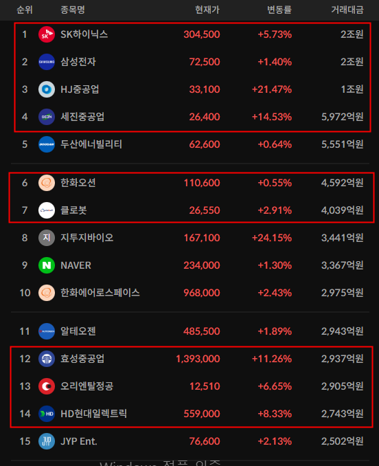 - 추가적으로 HJ중공업/세진중공업도 큰 거래대금을 먹으며 높은 상승세를 지속적으로 보여주고있다.