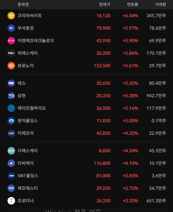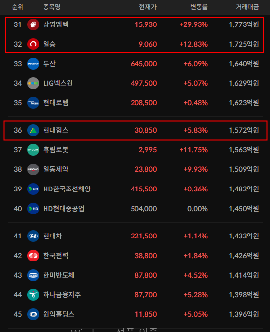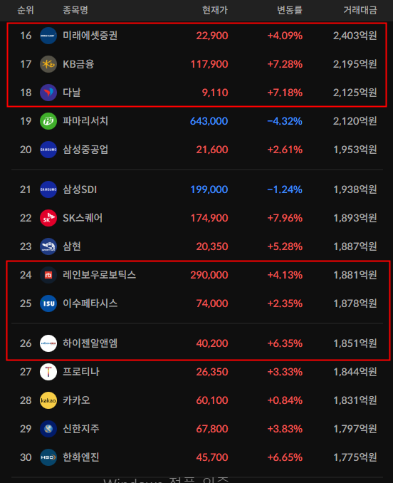 코스피/코스닥 상위 거래대금 종목