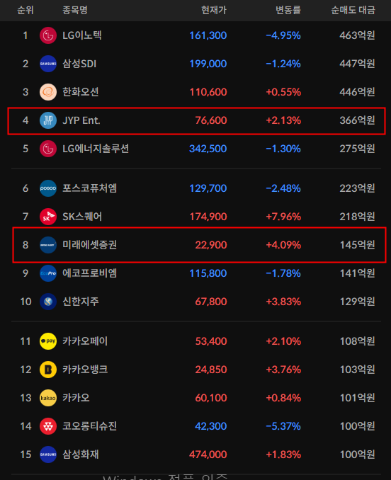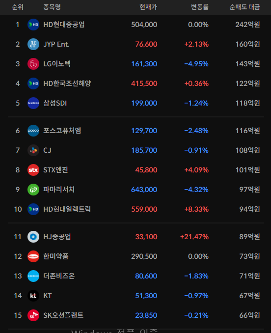 코스피/코스닥 외국인 순매도상위