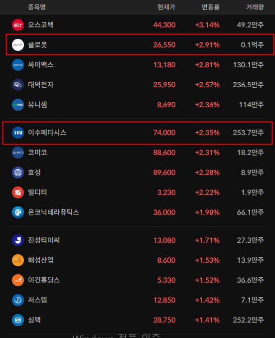 - 반도체의 상승세가 진행되고있어, 내일부터는 반도체와 관련된 중소형주들도 지켜보면 좋을 것 같다.