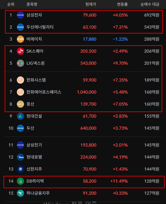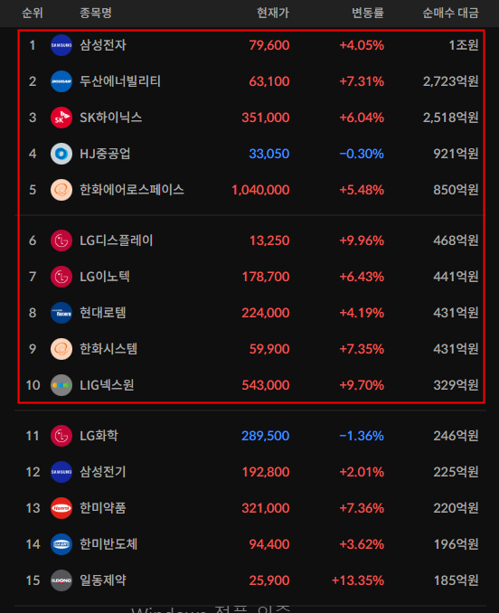 - 외국인과 기관의 매수 종목이 다소 다른 모습에 신기하다.