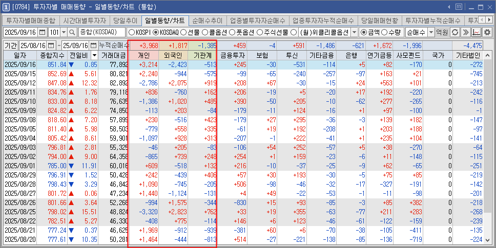 당일 투자자별 매매동향