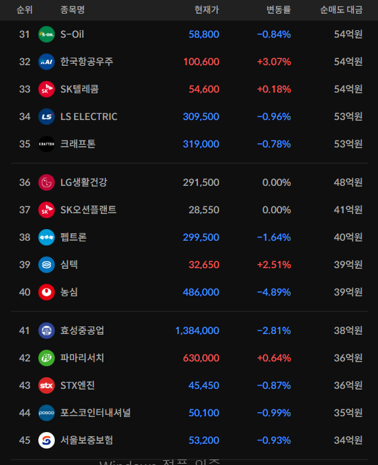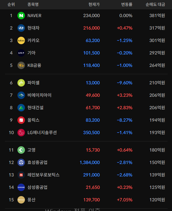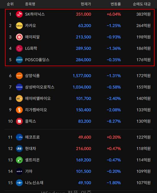 코스피/코스닥 외국인 순매도상위